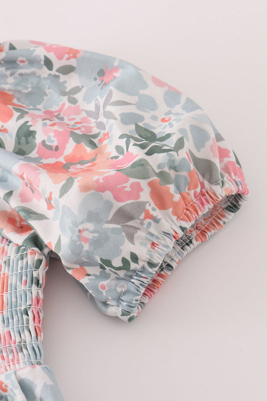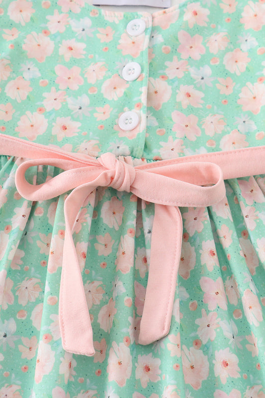 Mint Pink Floral Print Mom&Me Tiered Dress