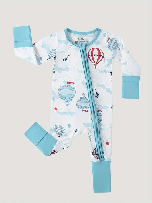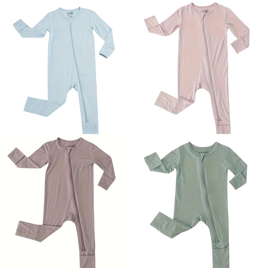 Zip-Up Bamboo Convertible Romper w/Footie Grips