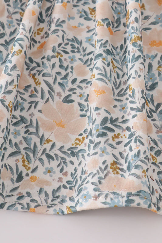 Mustard & Mint Floral Print Ruffle Bloomer Set