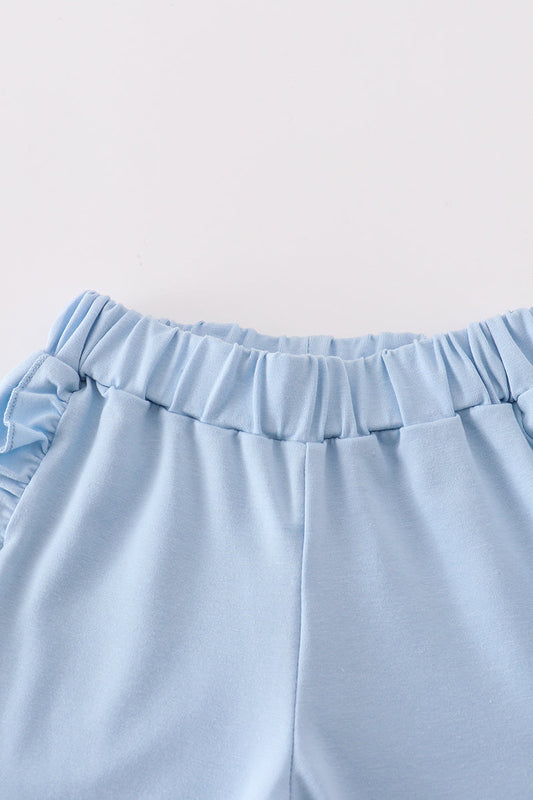 Blue Floral Bow Print Girl Bloomer Set