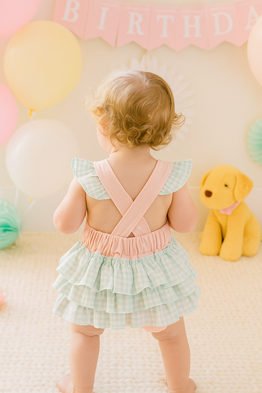 Pink Baseball Print Gingham Bloomer Set