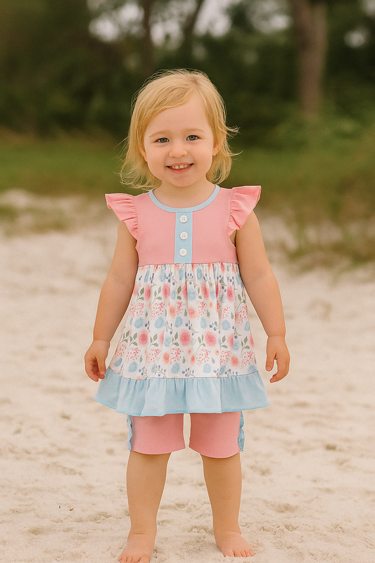 Blue & Pink Floral Print Bloomer Set