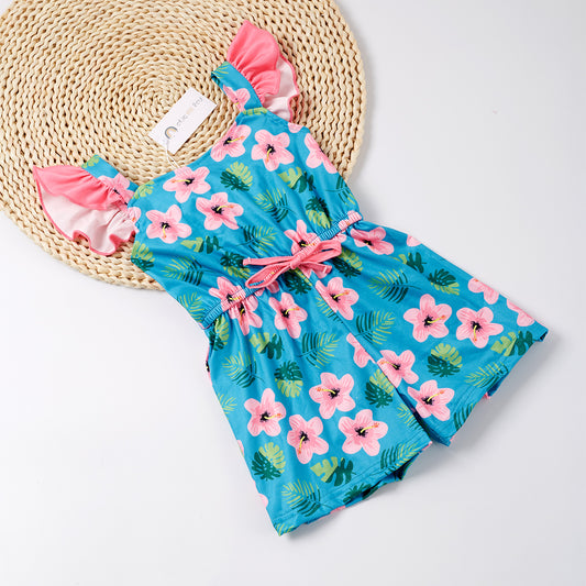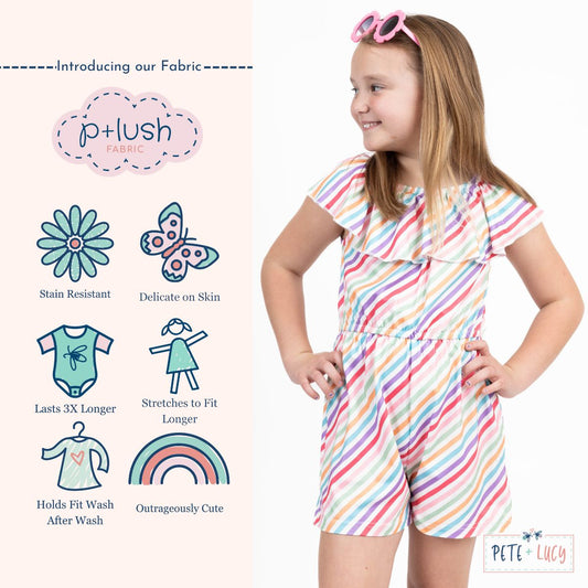 Rainbow Stripe Marine Creature Embroidery Smocked Shorts Set