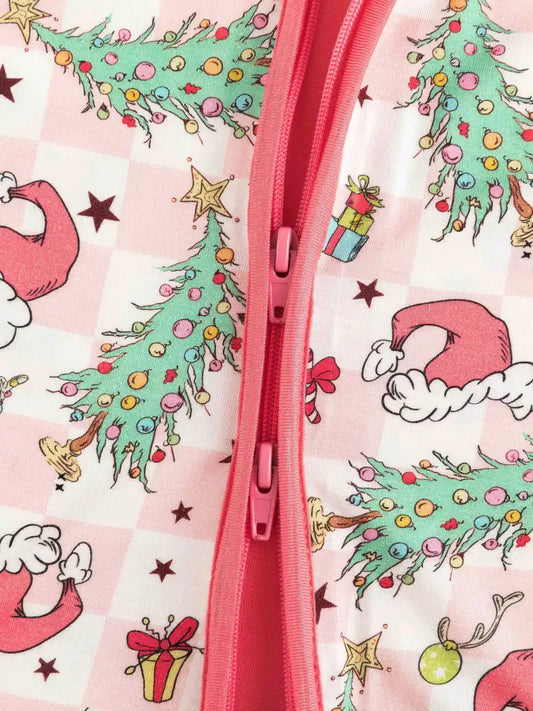 Pink Christmas Tree Bamboo Mom Pajamas Pants Set