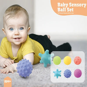 The Baby Sensory Ball Set is an engaging collection of 6 textured balls designed to stimulate your baby's senses and promote healthy development. Each ball features unique shapes, textures, and vibrant colors, making them perfect for tactile exploration and sensory play. Ideal for infants and toddlers, this set helps enhance fine motor skills, hand-eye coordination, and sensory awareness while providing endless fun during playtime.