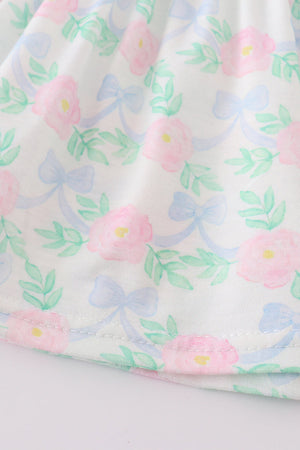 Get ready for some serious cuteness with our blue floral bow print girl bloomer set! This outfit is sure to be a hit with its playful print and adorable bow accents. Made with high-quality materials, it's perfect for playtime or special occasions. Get yours today!