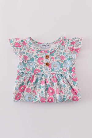 This bloomer set is a breath of fresh air! With a vibrant blue floral print, it's perfect for summer adventures. The bloomer style provides comfort and room for movement, while the matching top adds a touch of sweetness. Stay cool and cute in this adorable set!