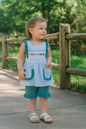 Make your little one moo-velous in this blue stripe cow embroidery girl set! With playful cow details and a fun pattern, this set is perfect for any adventure. So cute and comfy, your mini-fashionista will be udderly delighted!(Sorry, couldn't resist the pun!)