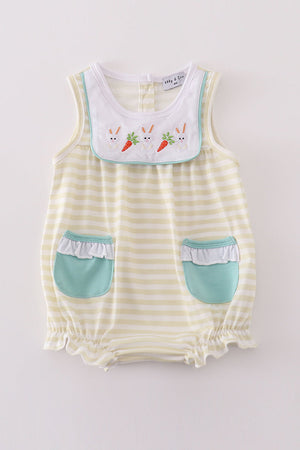 Celebrate Easter in style with our stripe bunny embroidery girl bubble! This unique and adorable outfit features a playful bunny embroidery that is sure to make your little one stand out. Made with high-quality materials, this bubble is both comfortable and stylish. Hop into the holiday with this cute and trendy piece.