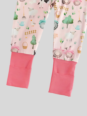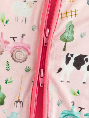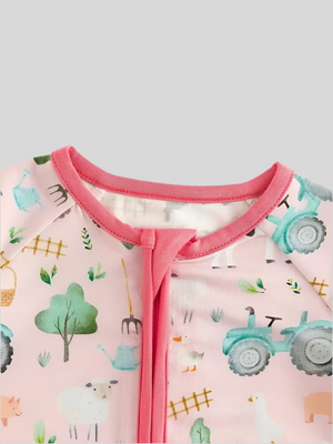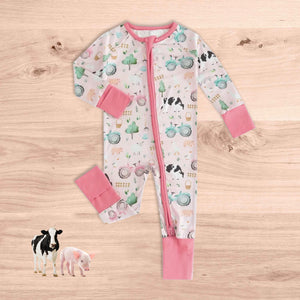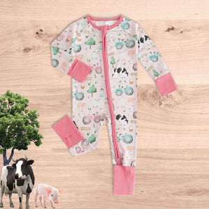 With its charming farm-themed design, your little one will look adorable while embracing their imaginative play! Tag-less with fold-over mittens, foot cuffs, and convenient double-zip closure, this romper is designed for easy dressing and maximum comfort, ensuring your baby is ready for all of life's little adventures.