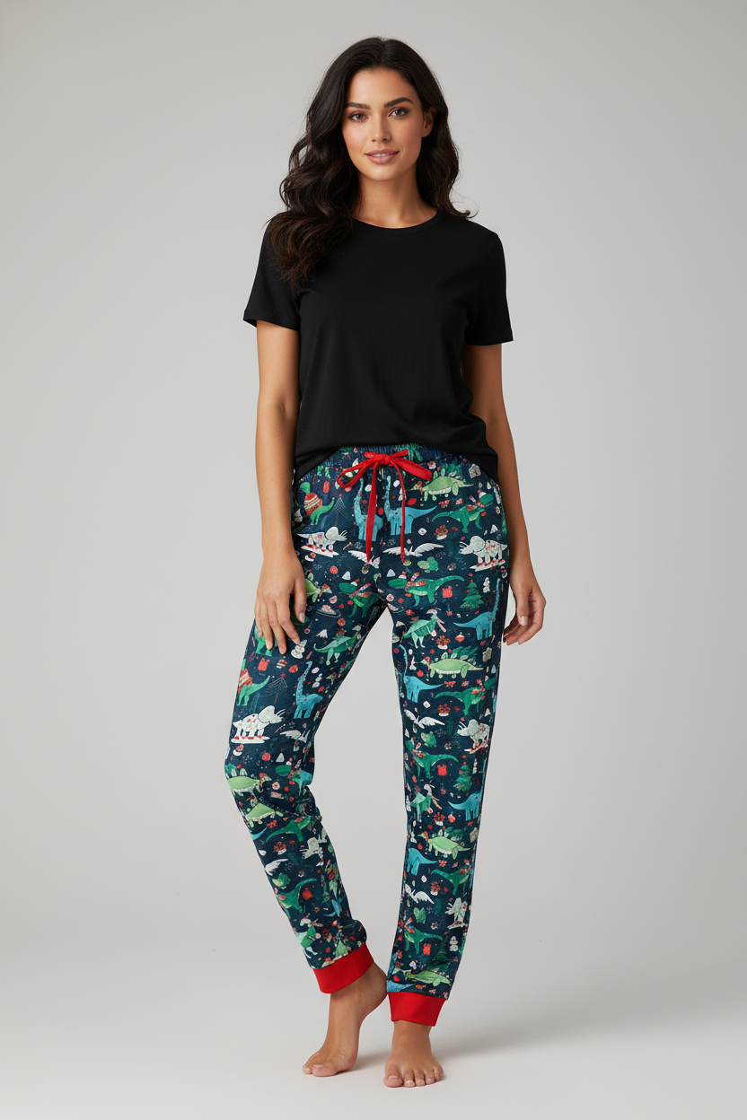 Bring a touch of fun to bedtime with these green dinosaur print mom pajamas pants. Crafted for comfort, their soft fabric makes winding down a joy, while the playful dinosaur pattern adds a cheerful vibe to your nighttime routine. Perfect for cozy evenings or relaxing weekends at home.