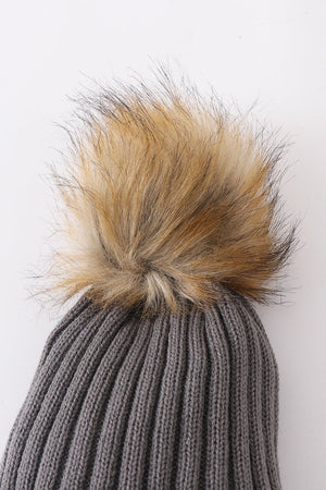 Grey Knit Pom Pom Beanie Hat Baby Toddler Adult