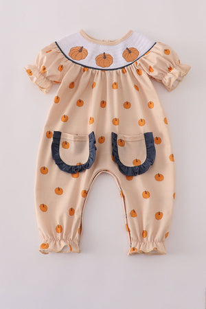 This khaki romper features charming embroidery and a smocked design that adds a playful touch to your little one’s wardrobe. Perfect for sunny days and casual outings, it combines comfort with cute style effortlessly. Easy to wear and adorable to see!