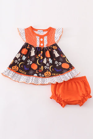 Dress your little pumpkin in this adorable Orange Halloween Ruffle Baby Set! Featuring festive ruffles and a pop of spooky orange, this set is perfect for trick-or-treating or festive photos. (Boo-tiful!)
