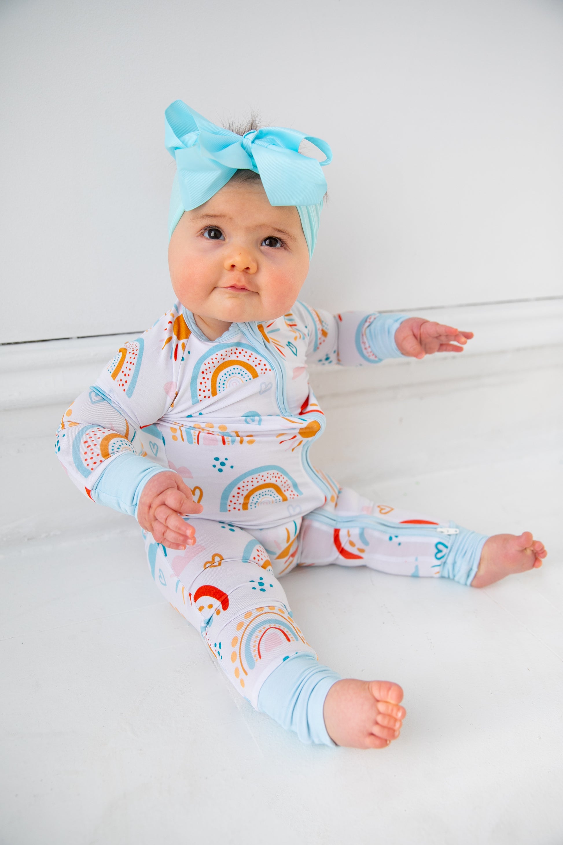 Introducing our Exclusive M+F "Over the Rainbow Bamboo Convertible Romper", a perfect blend of comfort, style, and versatility for your little one.