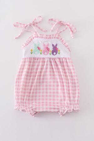 Hop into style with our pink bunny embroidery bubble! This adorable one-piece outfit features a playful pink bunny design that will have your little one looking absolutely charming. Made with soft and breathable fabric for maximum comfort, it's perfect for everyday wear or special occasions.