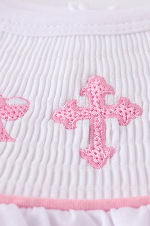 Get ready for a charming and chic look with our Pink cross embroider smocked set! With delicate cross embroidery and smocked detailing, this set is perfect for any occasion. Made with high-quality fabric, you'll feel confident and comfortable all day long. (Slay in this Pink set!)
