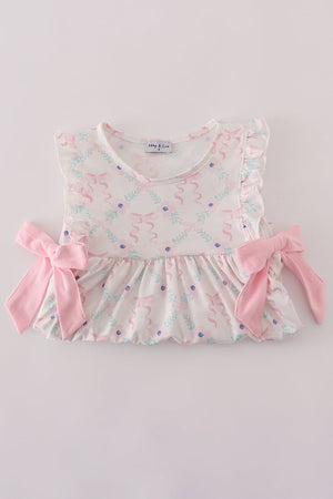 Add a touch of whimsy to your wardrobe with this pink floral bow print ruffle pants set. Featuring playful ruffles and a charming bow pattern, it’s perfect for brightening up any day with comfort and style. Ideal for casual outings or cozy days at home, this set brings fun and flair to your look effortlessly.