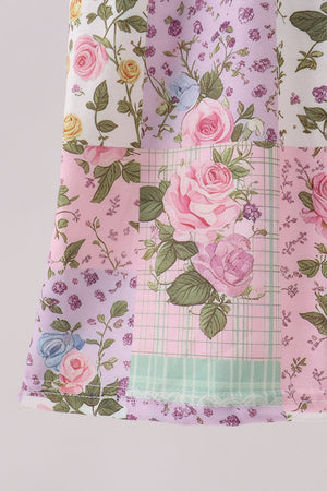 Purple Floral Checkered Ruffle Jumpsuit