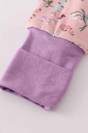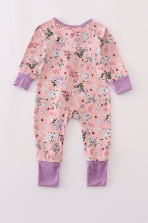 Slip into cozy charm with this purple floral print bamboo pajamas romper. Soft, breathable bamboo fabric keeps you comfy all night, while the playful floral design adds a touch of whimsy to your loungewear. Perfect for relaxing or dreaming sweetly in style.