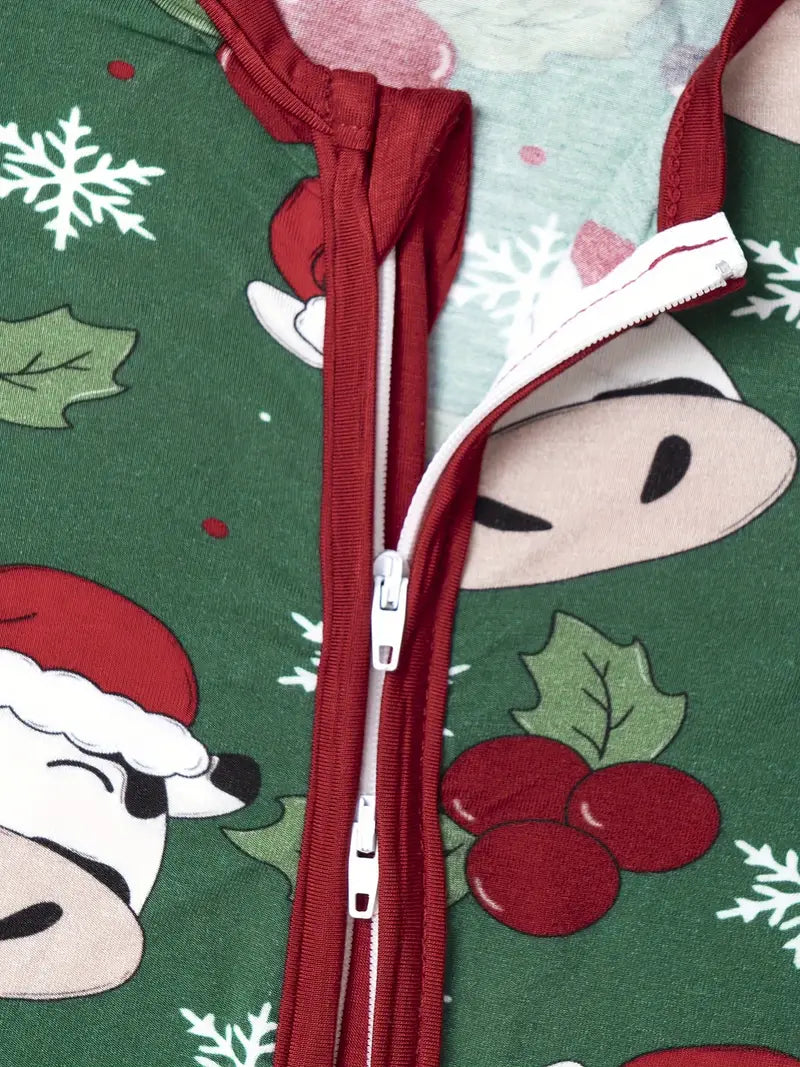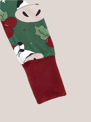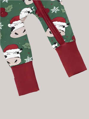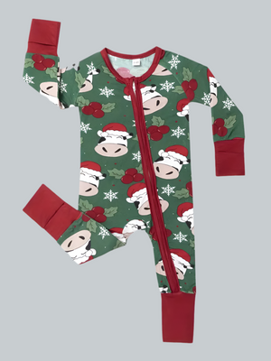 Moo-rry Cowmas! This two-zipper Bamboo romper is perfect for the Holiday season!